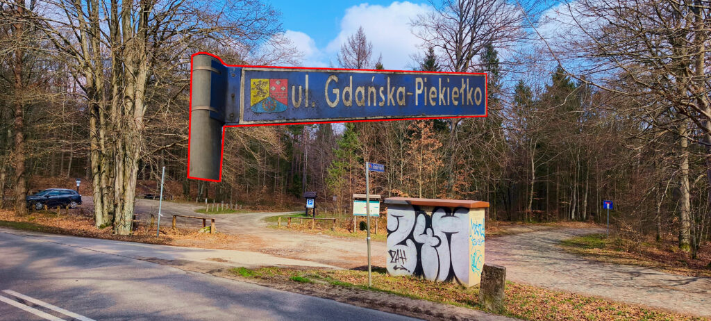 Około 500m po przejechaniu nad Trasą Kaszubską nawrót w prawo.