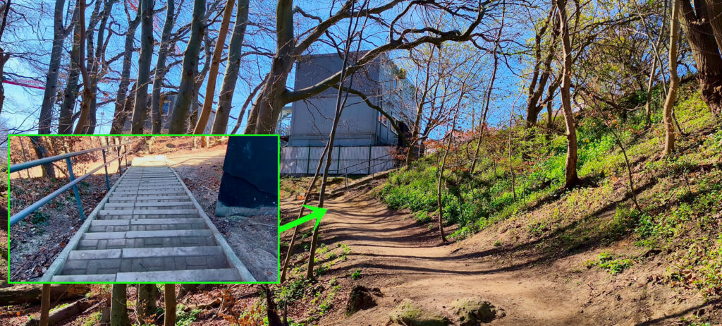 Około 11.1 km przejeżdżamy przez bramkę i mamy kilka schodków w dół (z ul.Norwida – f.)