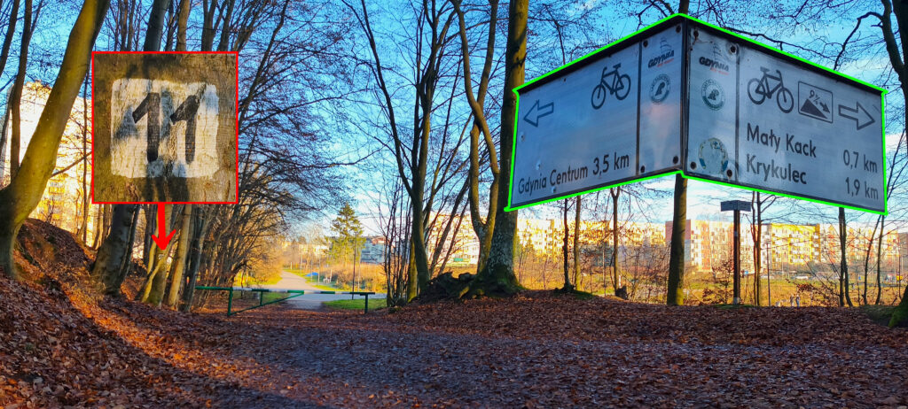za około 800m jedziemy w lewo (czerwona strzałka -f.)