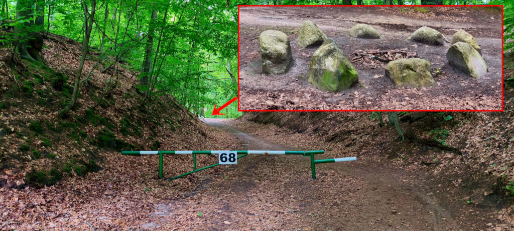 za ponad 500m przejeżdżamy za szlabanem 68 i mijając skrzyżowanie kamienny krąg (f.)