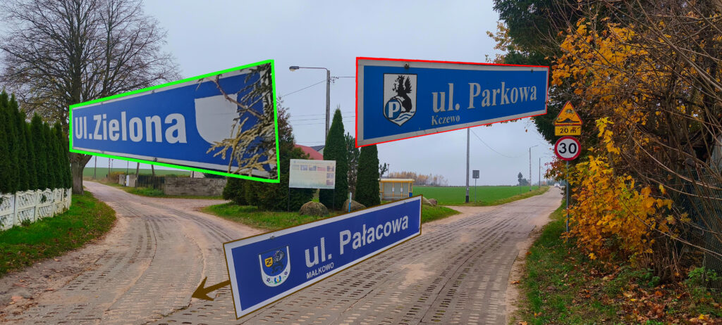 w Małkowo prawą odnogą (ul.Pałacowa – f.)
